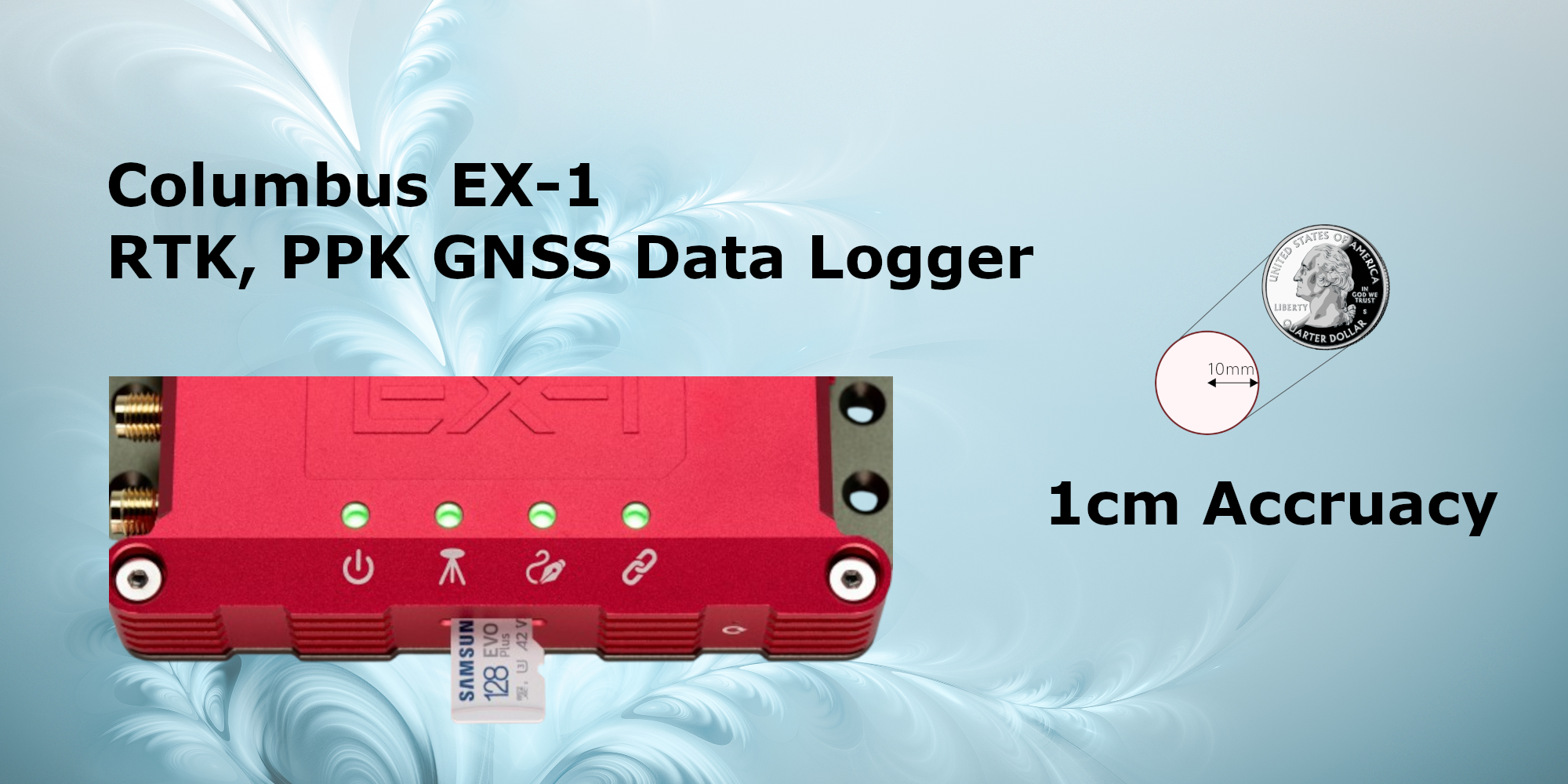 Columbus EX-1 Ultra-High Accuracy RTK GNSS Data Logger (Supports RTK, PPK, and standalone data logging; 30 cm accuracy in standalone mode; up to 1 cm accuracy with RTK or PPK)