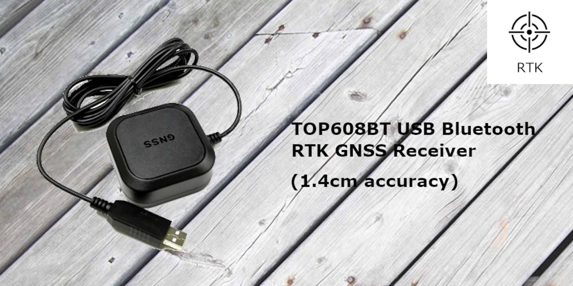 TOP608BT High Precision USB / Bluetooth GNSS Receiver (ZED-F9P multi-band RTK, 30 cm accuracy standalone, up to 1.4 cm accuracy with RTK)